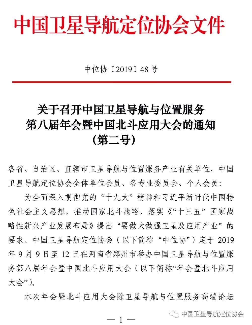 關于召開中國衛星導航與位置服務第八屆年會暨中國北斗應用大會的通知(第二號)